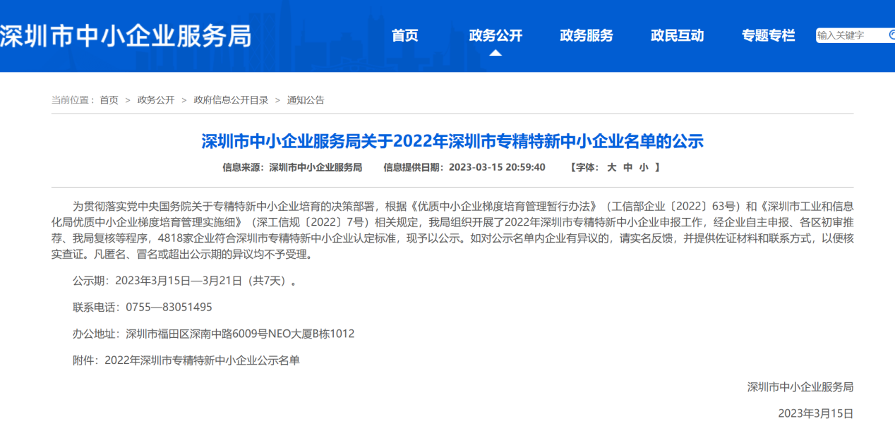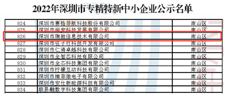 喜報(bào) | 瑞馳獲評(píng) 深圳市2022年度“專精特新”中小企業(yè)