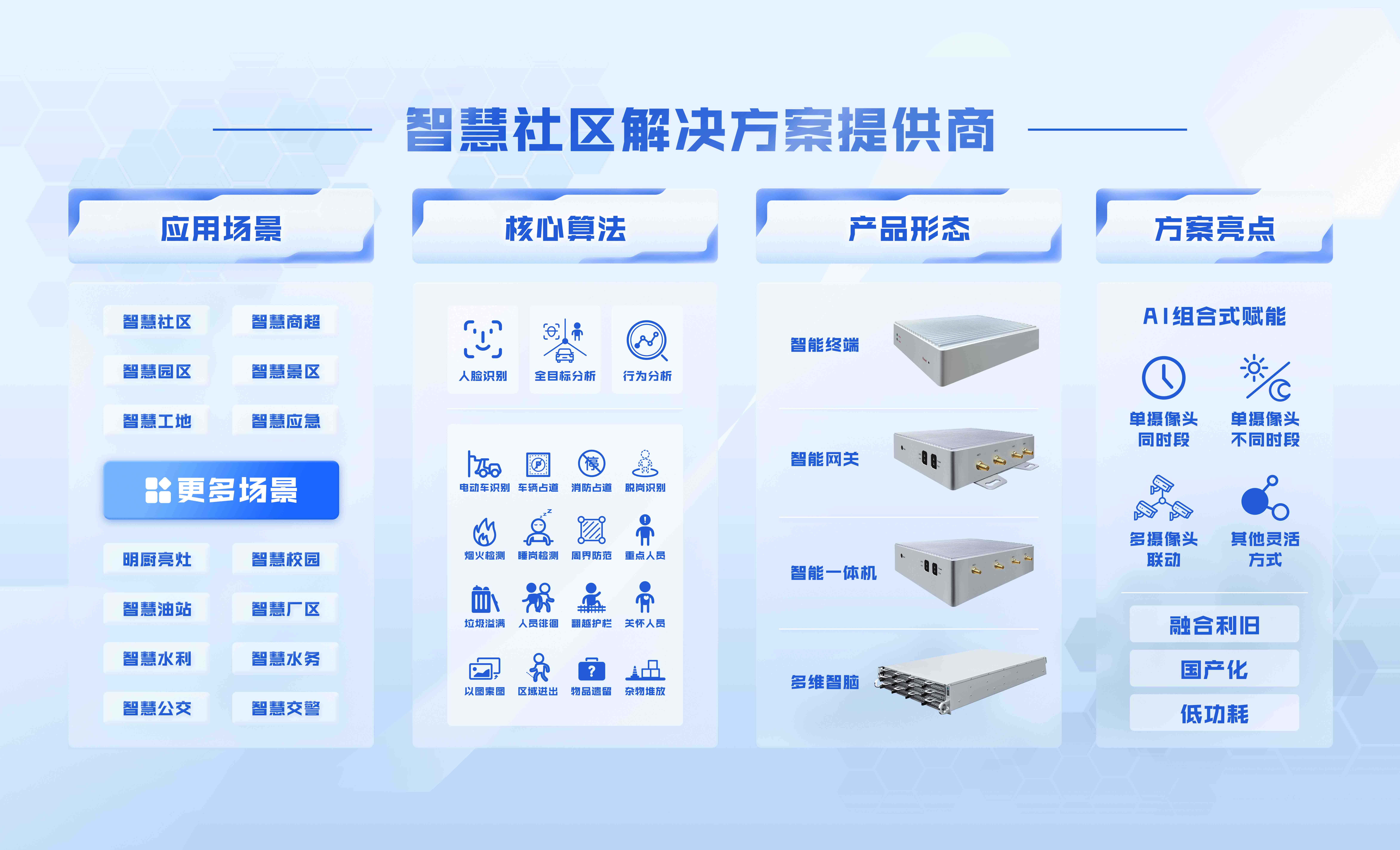 此次將動態(tài)演示多維智腦一體機(jī),將集智能視頻分析、視頻監(jiān)控存儲、業(yè)務(wù)系統(tǒng)應(yīng)用于一體的多維度應(yīng)用產(chǎn)品進(jìn)行演示,該產(chǎn)品能為不同行業(yè)用戶提供一體化的智能分析產(chǎn)品解決方案,滿足不同人群的使用場景需求。