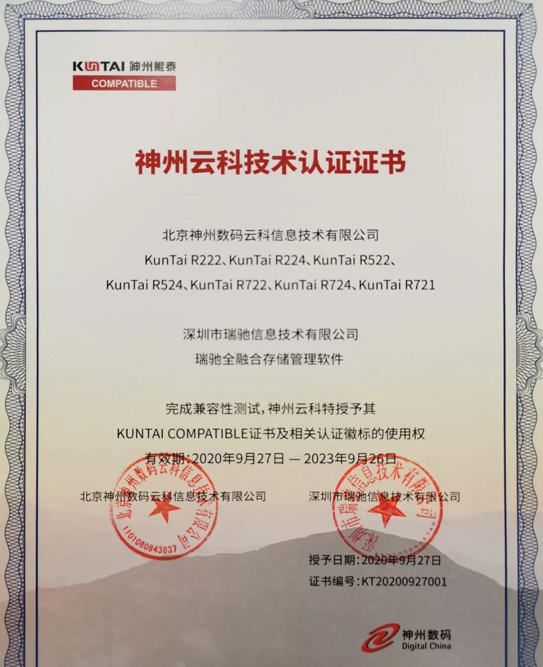 瑞馳與神州云科完成產(chǎn)品兼容互認(rèn)證