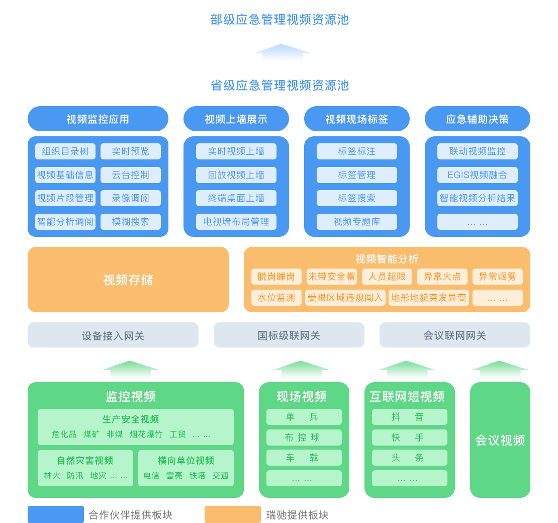 瑞馳合作伙伴通過(guò)自研的智慧應(yīng)急綜合管理平臺(tái),結(jié)合瑞馳的AI邊緣計(jì)算設(shè)備、算法和微集群視頻云存儲(chǔ),給客戶提供一整套應(yīng)急管理視頻資源池平臺(tái)方案,全面提高園區(qū)、工廠的應(yīng)急管理能力,協(xié)助政府應(yīng)急管理工作。